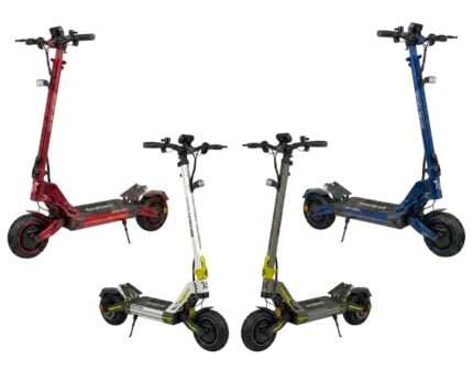 Patinete eléctrico de alto rendimiento con motor de 1000W (52V) y batería de 52V 18.2Ah, ofreciendo hasta 60 km de autonomía. Incorpora frenos hidráulicos, suspensión ajustable y neumáticos tubeless 10” para una conducción cómoda y segura.