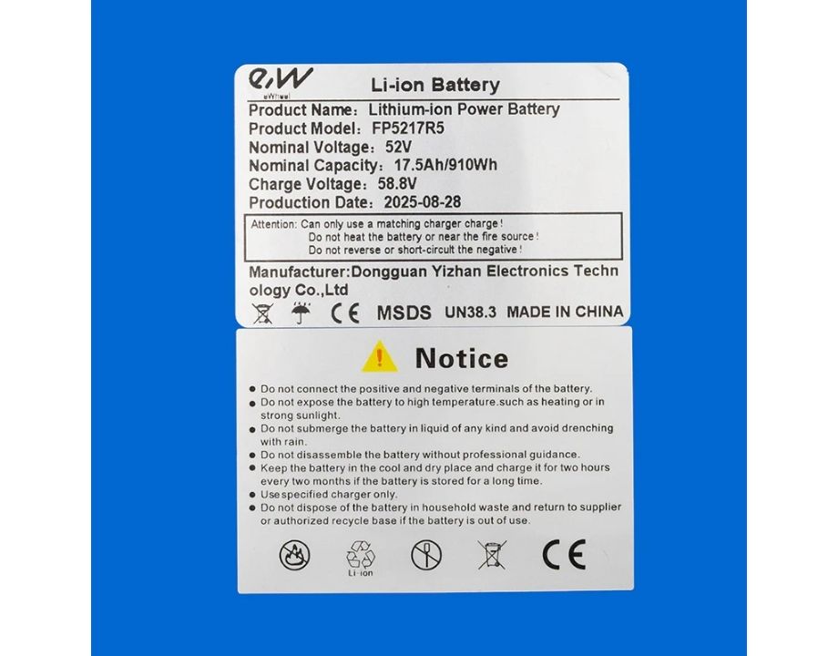 Batería de 52v y 17,5Ah [Ewheel] válida para el patinete eléctrico de la marca Dualtron Mini.