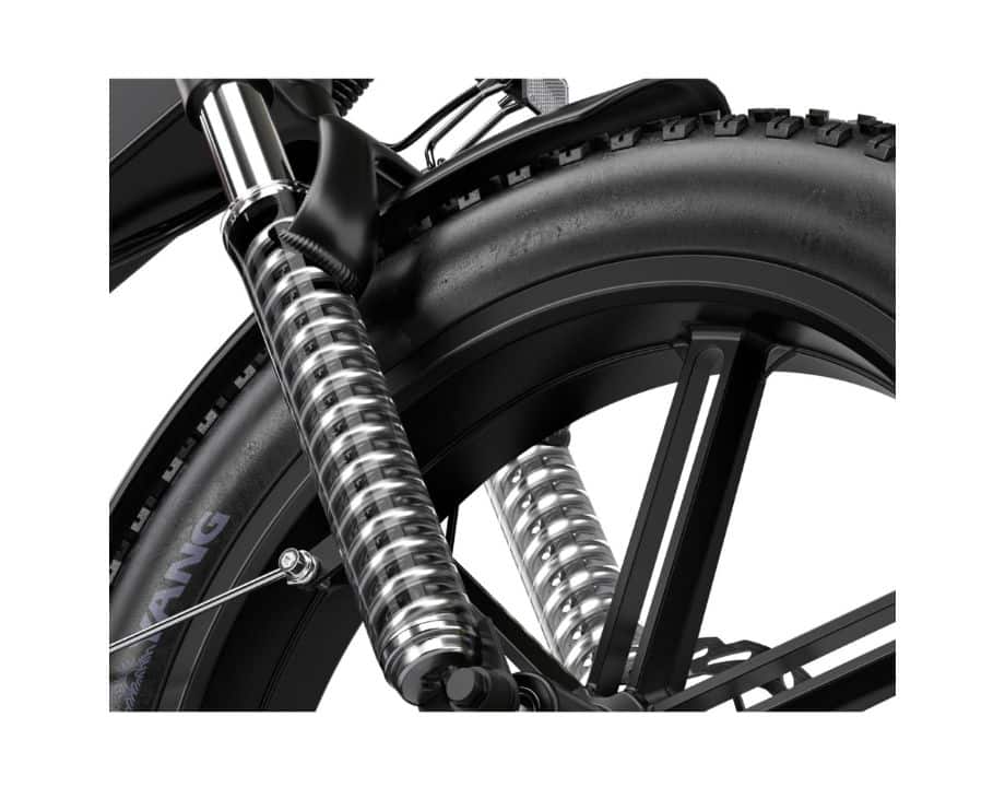 Sus ruedas fat bike de 20” x 4.0”, la suspensión delantera y los frenos hidráulicos garantizan una conducción suave, estable y segura.
