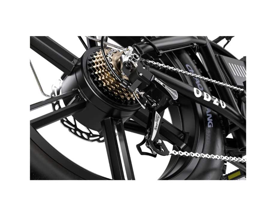 Sus ruedas fat bike de 20” x 4.0”, cambio de 7 velocidades y frenos hidráulicos garantizan estabilidad, agarre y control en cualquier terreno.