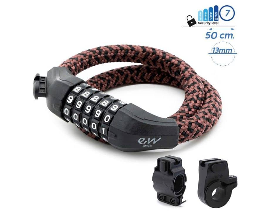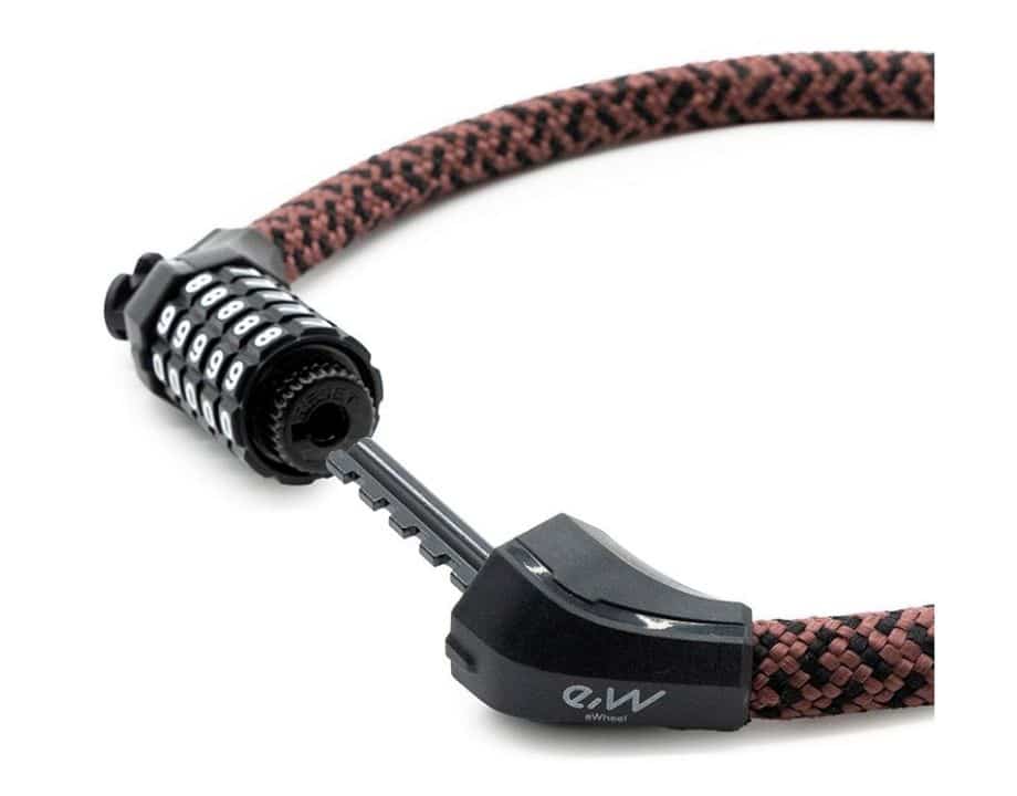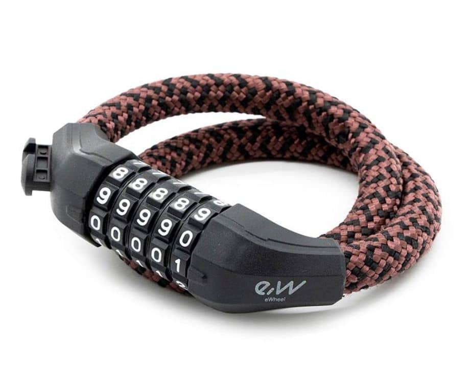 Candado modelo EWLK025 con contraseña y funda de nylon marrón de la marca Ewheel válido para patinete y bicicleta.